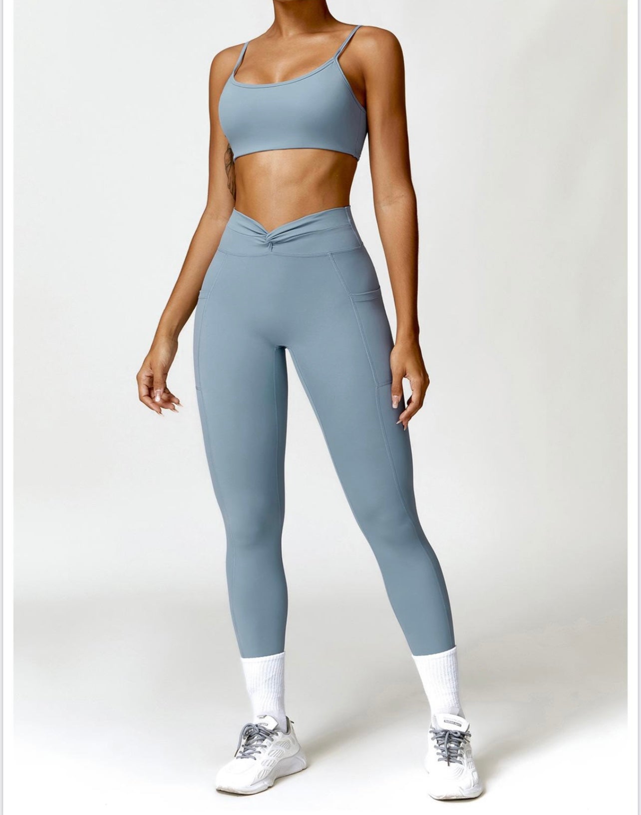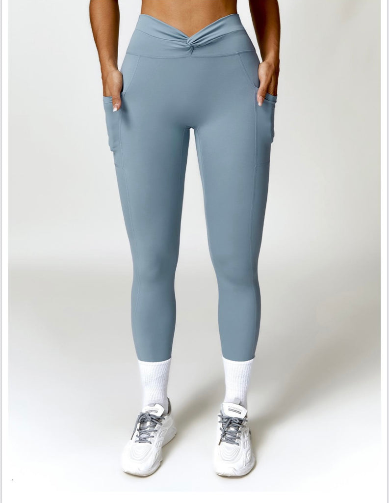 FULL LENGTH LEGGINGS WITH POCKETS - SLADE BLUE