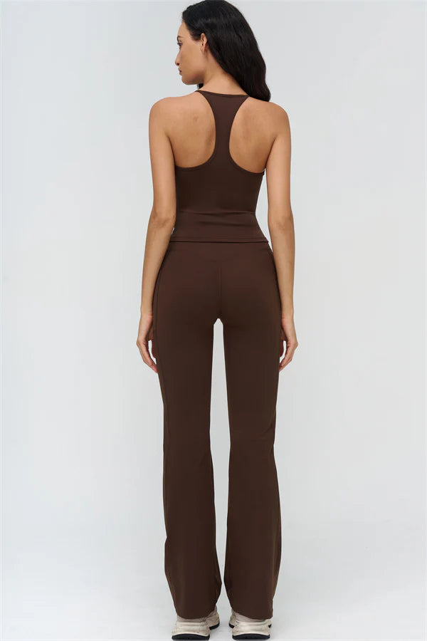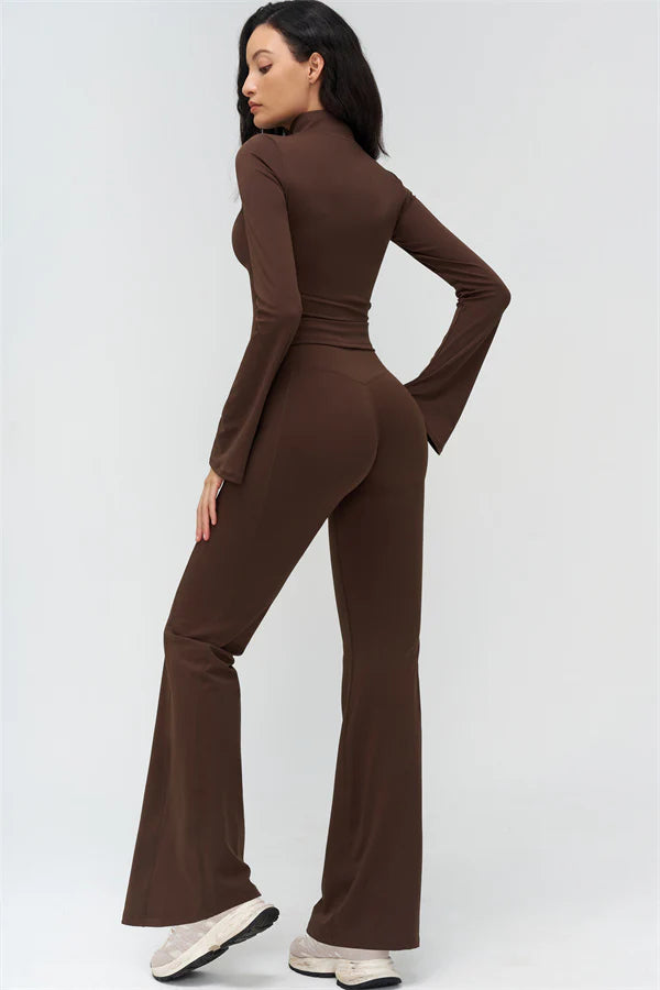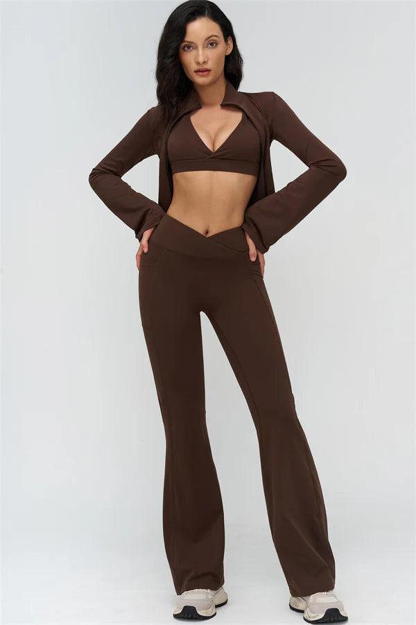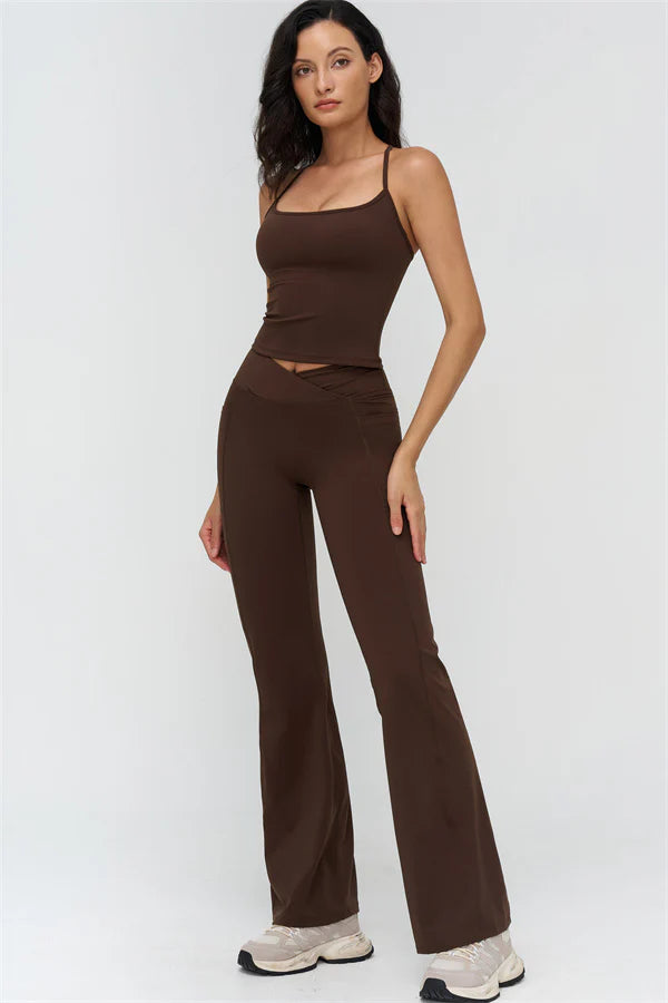 Crafted from a brushed, naked-feel fabric that is soft, stretchy, and comfortable against the skin. The FLARE leggings offer a cross-waist waistband to prevent rolling, side pockets for easy storage, and sculpting seams that lift and enhance your glutesThe flared leggings offer a cross-waist waistband to prevent rolling, sculpting seams that lift and define your glutes, and flared cuffs to elongate your legs.