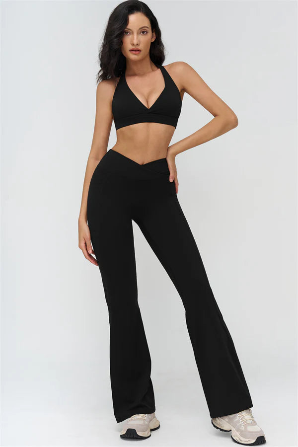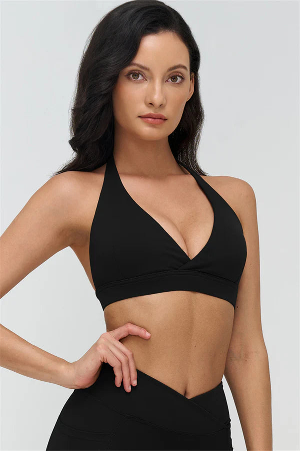 The STRIDE collection - designed for maximum comfort, style, and performance. The deep V-neck sports bra highlights your neckline while the open square back allows full freedom of movement and showcases a flattering butterfly-back silhouette
