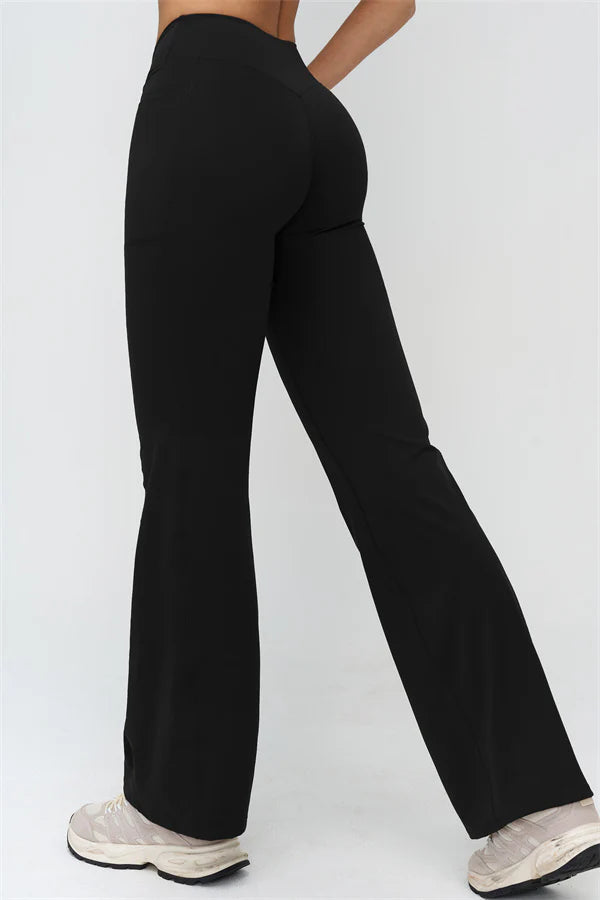Crafted from a brushed, naked-feel fabric that is soft, stretchy, and comfortable against the skin. The FLARE leggings offer a cross-waist waistband to prevent rolling, side pockets for easy storage, and sculpting seams that lift and enhance your glutesThe flared leggings offer a cross-waist waistband to prevent rolling, sculpting seams that lift and define your glutes, and flared cuffs to elongate your legs.