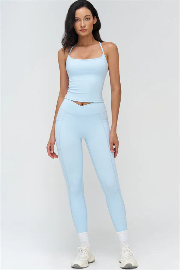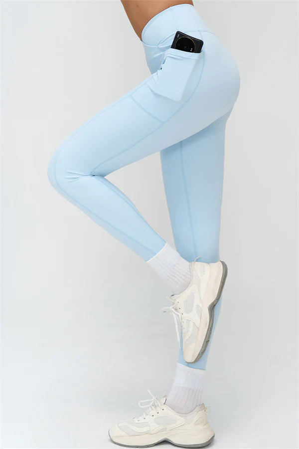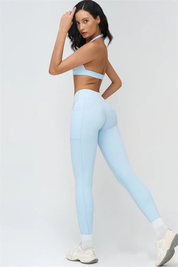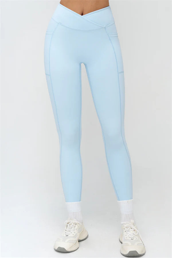 Crafted from a brushed, naked-feel fabric that is soft, stretchy, and comfortable against the skin. The leggings offer a cross-waist waistband to prevent rolling, side pockets for easy storage, and sculpting seams that lift and enhance your glutes.