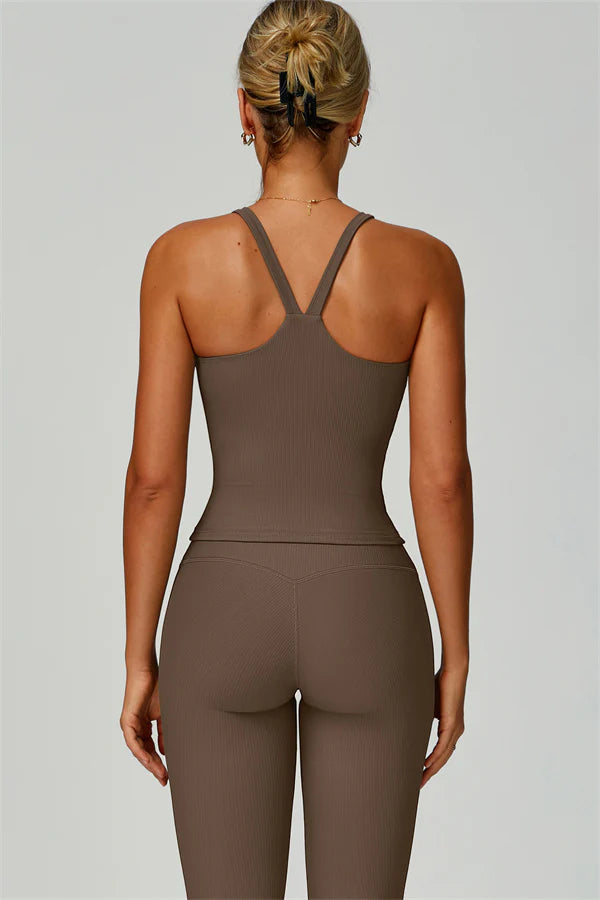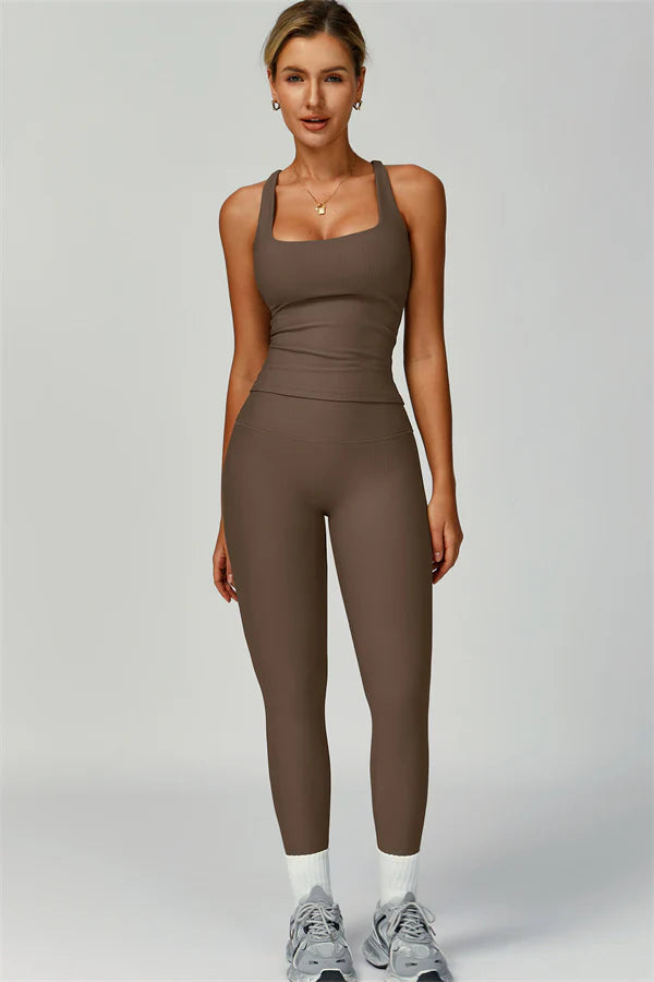Sleek, supportive, and designed for freedom of movement, The Ribbed Set perfectly blends style with function, features a flattering square-neck tank crafted from breathable ribbed recycled fabric.