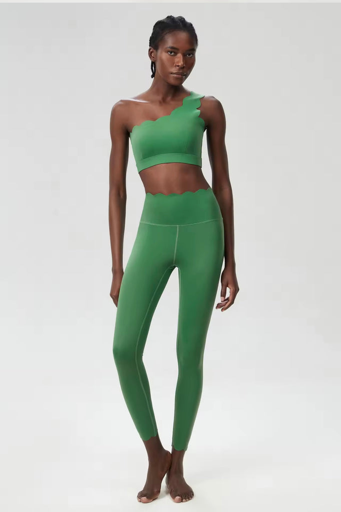 Our new fave High Waisted Legging features scolloped detailing waistband and bottom,  engineered to be thiner and lighter. It went through 4 fittings to be made incredibly flattering. It's romantic and elegant. It goe s everywhere and offers that effortless chic. It's versatile and epic. Match it up with a fave  top and wear everyday